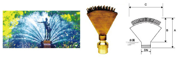可调凤尾喷头是在扇形喷头上安排一排或两排小喷嘴,喷水造型如凤尾舒展,水流柔媚动人。可垂直安装,也可倾斜安装,广泛应用于室内外各种喷水池中。